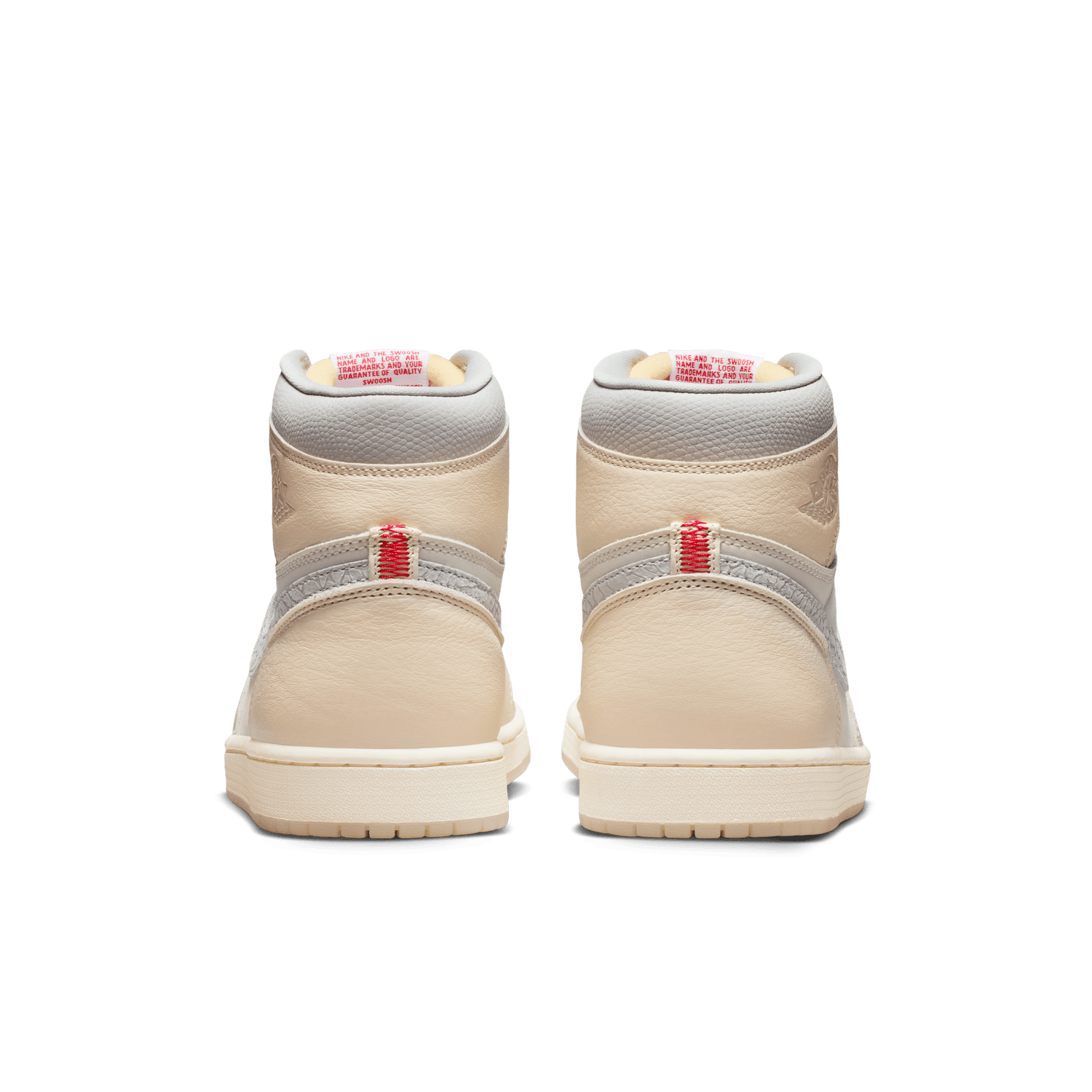 We've stripped back this AJ1 to the fundamentals. Premium leather and performance-ready details get a clean wash of Sail and Pale Ivory for elevated everyday wear, and elephant print on the Swoosh logo adds just the right amount of texture. The translucent outsole gives this AJ1 a modern touch, while exposed foam in the tongue and red contrast stitching on the heel nod to its roots on the court.