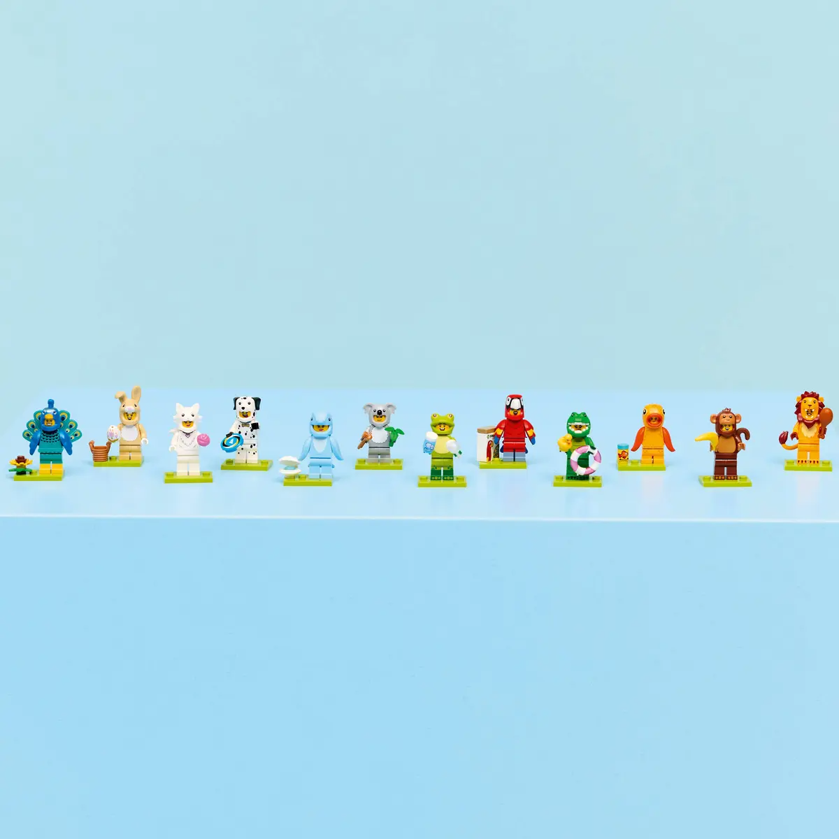 Girls and boys ages 5 and up can play out fun stories with 1 of 12 collectible figures from the LEGO® Minifigures Animal Series 28 (71051) small animal toy mystery boxes. There is 1 surprise LEGO minifigure in each box and a total of 12 charactersto collect including toy figures wearing parrot, lion, frog, crocodile, Dalmatian, goldfish, cute bunny, peacock, fluffy cat, koala, dolphin and monkey costumes. Each of the 12 minifigures comes in a sealed mystery box, and all are accompanied by at le ast 1 accessory. These detailed cute animal toys can be added to an existing collection, proudly displayed or used to create fun-filled stories. This small gift for kids who like animals and nature is a fun treat and inspires great storytelling and countless hours of playtime on their own or with friends.