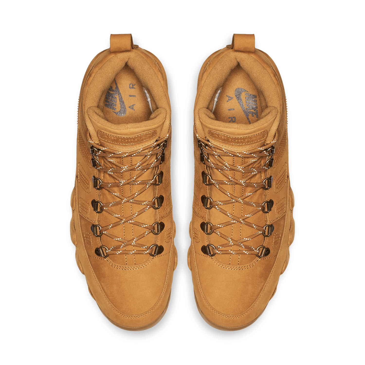 The Air Jordan 9 Retro Boot combines elements from the Special Field Boot and MJ's iconic ninth signature game shoe, originally designed by Tinker Hatfield and released in 1993. The rugged design is built to handle rough weather without breaking from its classic style. It's outfitted with durable leather in the upper, a gusseted tongue, metal eyelets and heavy tread. Air Zoom cushioning in the heel and forefoot add a bouncy buffer between your feet and the ground beneath you.