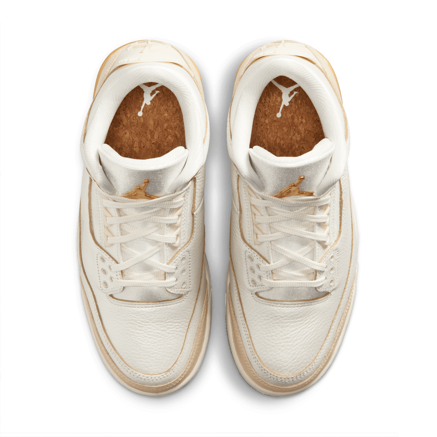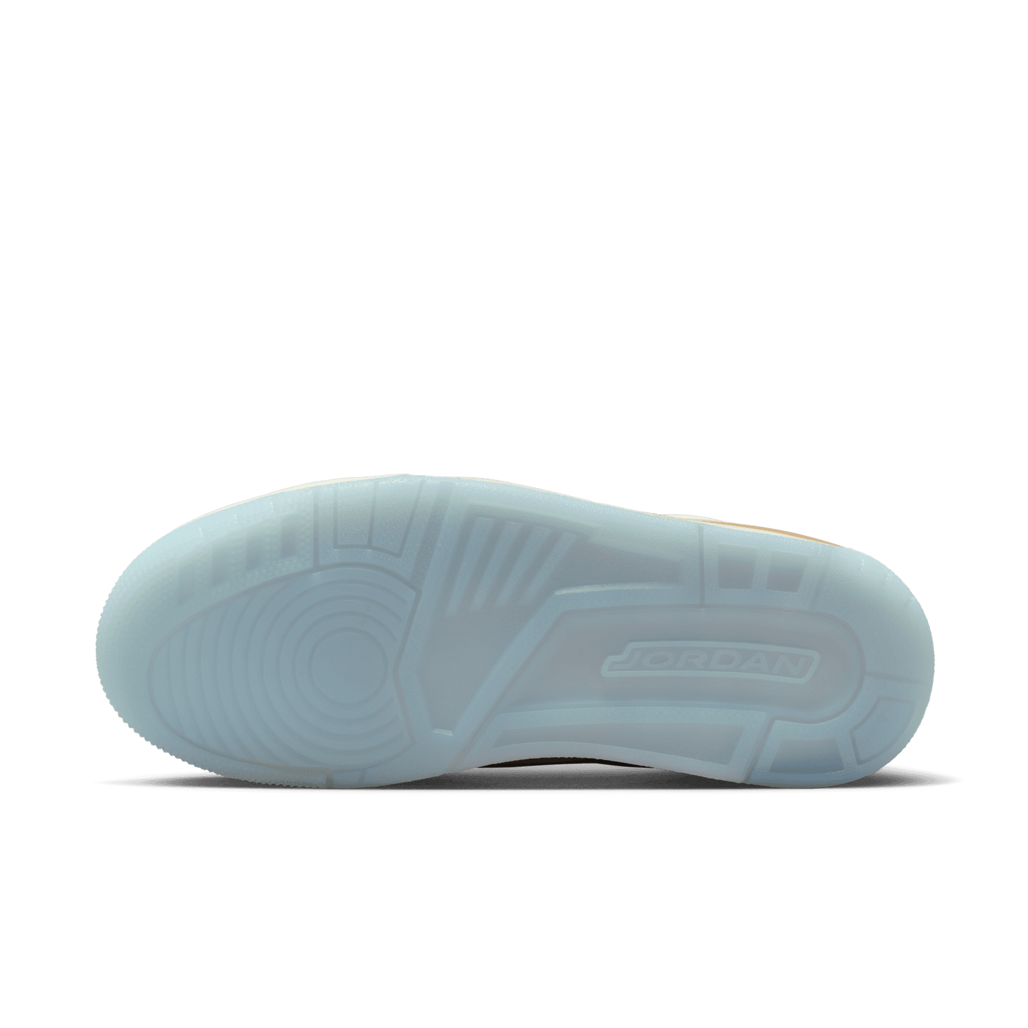 Sneaker royalty meets modern luxury. Rich suede overlays replace the traditional elephant print, creating a smooth rendition of MJ's iconic AJ3. The Sail and Pale Ivory leather upper create an understated base, letting the polished Metallic Gold accents shine. An icy blue outsole finishes off this premium shoe with an extra touch of elegance.