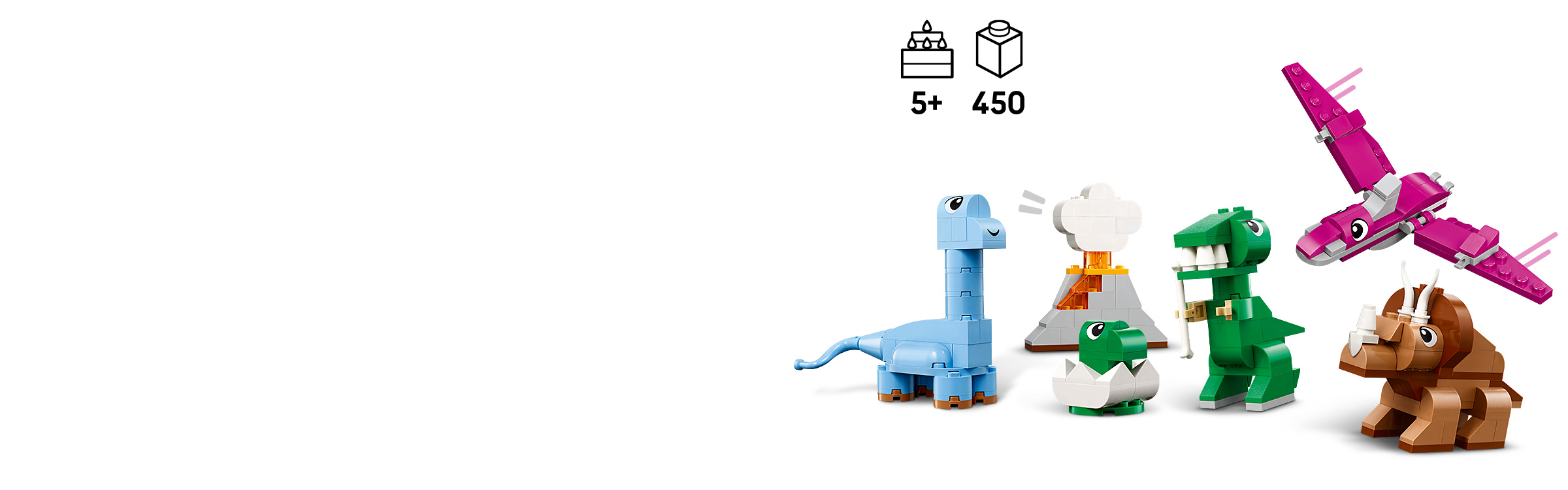 Includes a T. rex, pterosaur, triceratops and brontosaurus.