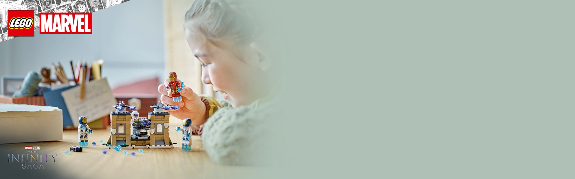 Fans of Marvel Studios’ Avengers: Age of Ultron can bring the movie’s action to life with this buildable Iron Man playset.